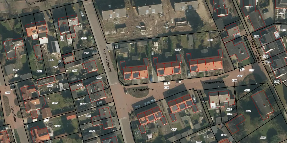 Het perceel waarop Vermeerweg 3 staat heeft een oppervlakte van 2365 m². Dit is een zeer groot perceel. De perceeloppervlakte wordt geregistreerd door het Kadaster. Gedetailleerde informatie over de maten van dit perceel kunt u vinden in het rapport Kadastrale kaart met maatvoering van Vermeerweg 3.