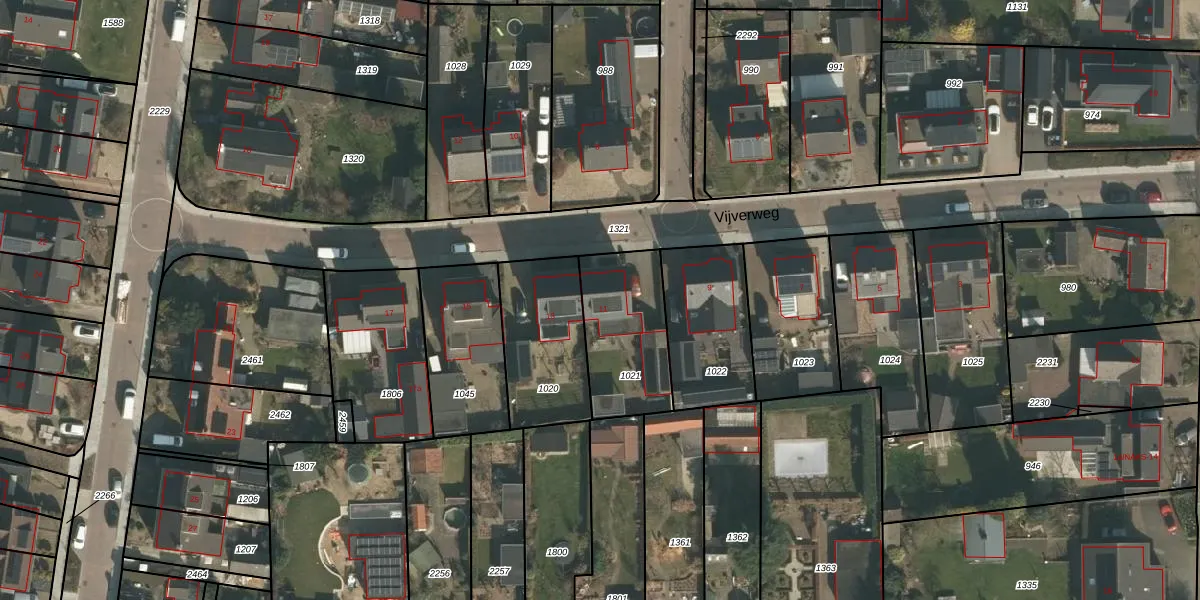 Vijverweg 11 is gelegen op kadastraal perceel GBK00E1021. Deze kadastrale aanduiding is uniek en wordt gebruikt door het Kadaster om eigendomsrechten en andere zakelijke rechten vast te leggen. Het perceel maakt onderdeel uit van de kadastrale gemeente Groesbeek.