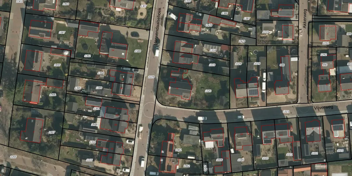 Vijverweg 16 is gelegen op kadastraal perceel GBK00E1320. Deze kadastrale aanduiding is uniek en wordt gebruikt door het Kadaster om eigendomsrechten en andere zakelijke rechten vast te leggen. Het perceel maakt onderdeel uit van de kadastrale gemeente Groesbeek.