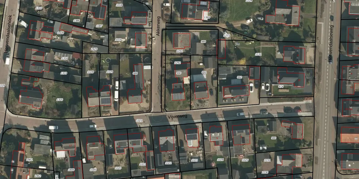 Het perceel waarop Vijverweg 6 staat heeft een oppervlakte van 432 m². Dit is een groot perceel. De perceeloppervlakte wordt geregistreerd door het Kadaster. Gedetailleerde informatie over de maten van dit perceel kunt u vinden in het rapport Kadastrale kaart met maatvoering van Vijverweg 6.