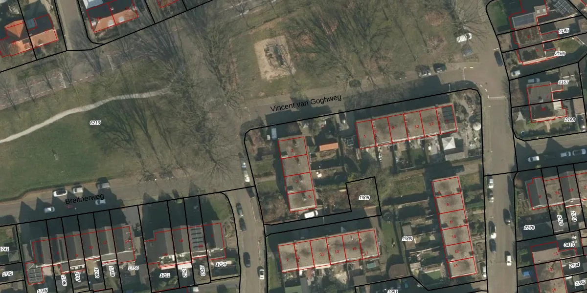 Vincent van Goghweg 2 is gelegen op kadastraal perceel GBK00L1909. Deze kadastrale aanduiding is uniek en wordt gebruikt door het Kadaster om eigendomsrechten en andere zakelijke rechten vast te leggen. Het perceel maakt onderdeel uit van de kadastrale gemeente Groesbeek.