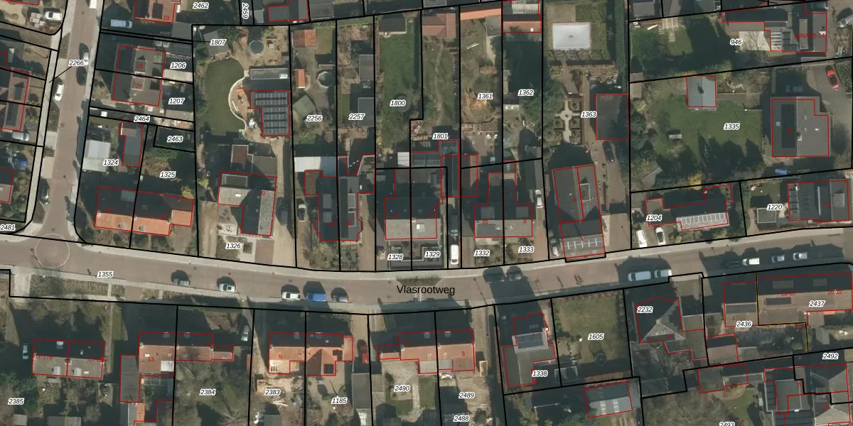 Vlasrootweg 12 is gelegen op kadastraal perceel GBK00E1329. Deze kadastrale aanduiding is uniek en wordt gebruikt door het Kadaster om eigendomsrechten en andere zakelijke rechten vast te leggen. Het perceel maakt onderdeel uit van de kadastrale gemeente Groesbeek.