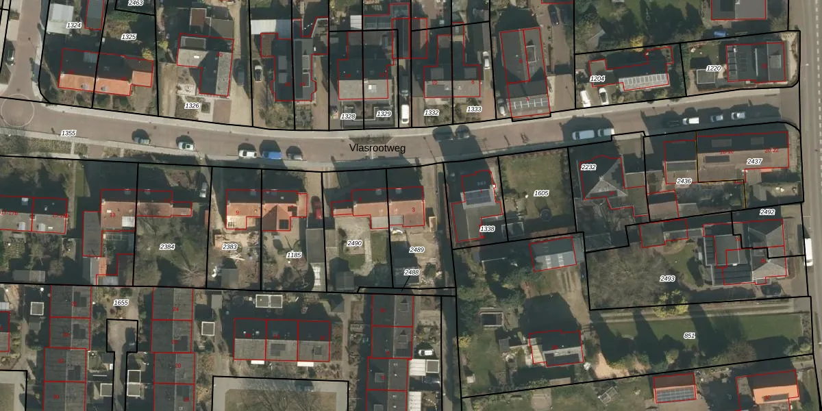 Vlasrootweg 3 is gelegen op kadastraal perceel GBK00E2489. Deze kadastrale aanduiding is uniek en wordt gebruikt door het Kadaster om eigendomsrechten en andere zakelijke rechten vast te leggen. Het perceel maakt onderdeel uit van de kadastrale gemeente Groesbeek.