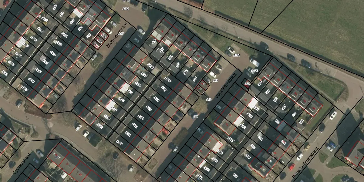 Vogelkersstraat 15 is gelegen op kadastraal perceel GBK00M1026. Deze kadastrale aanduiding is uniek en wordt gebruikt door het Kadaster om eigendomsrechten en andere zakelijke rechten vast te leggen. Het perceel maakt onderdeel uit van de kadastrale gemeente Groesbeek.