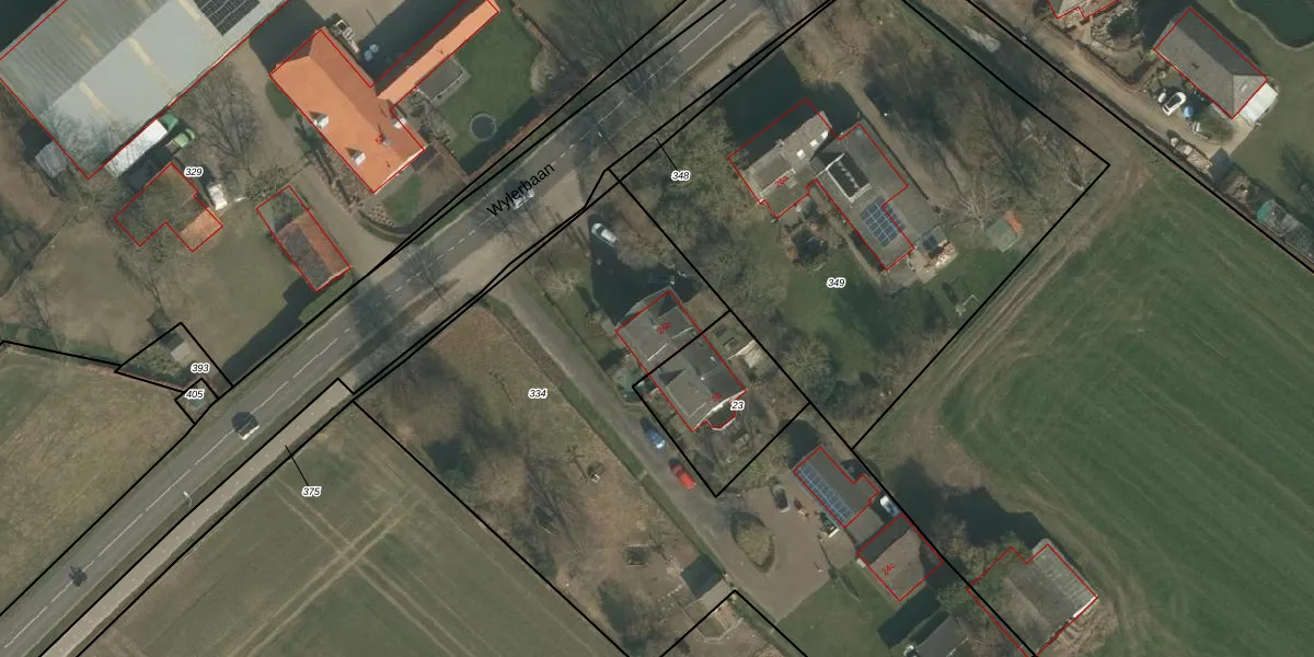 Het perceel waarop Wylerbaan 24-b staat heeft een oppervlakte van 3470 m². Dit is een zeer groot perceel. De perceeloppervlakte wordt geregistreerd door het Kadaster. Gedetailleerde informatie over de maten van dit perceel kunt u vinden in het rapport Kadastrale kaart met maatvoering van Wylerbaan 24-b.