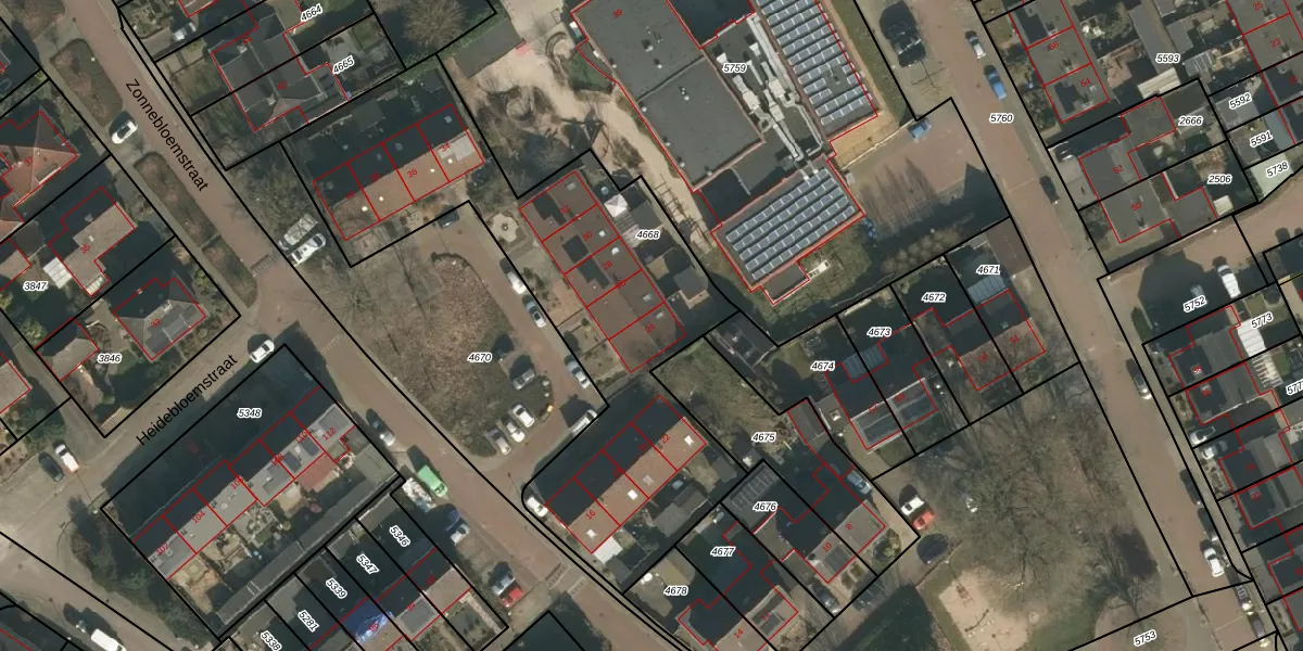 Zonnebloemstraat 24 is gelegen op kadastraal perceel GBK00L4668. Deze kadastrale aanduiding is uniek en wordt gebruikt door het Kadaster om eigendomsrechten en andere zakelijke rechten vast te leggen. Het perceel maakt onderdeel uit van de kadastrale gemeente Groesbeek.