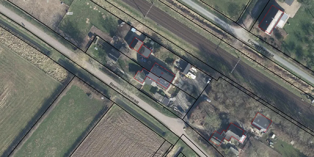 Beerenclaauwstraat 21 is gelegen op kadastraal perceel DVN00H1310. Deze kadastrale aanduiding is uniek en wordt gebruikt door het Kadaster om eigendomsrechten en andere zakelijke rechten vast te leggen. Het perceel maakt onderdeel uit van de kadastrale gemeente Duiven.