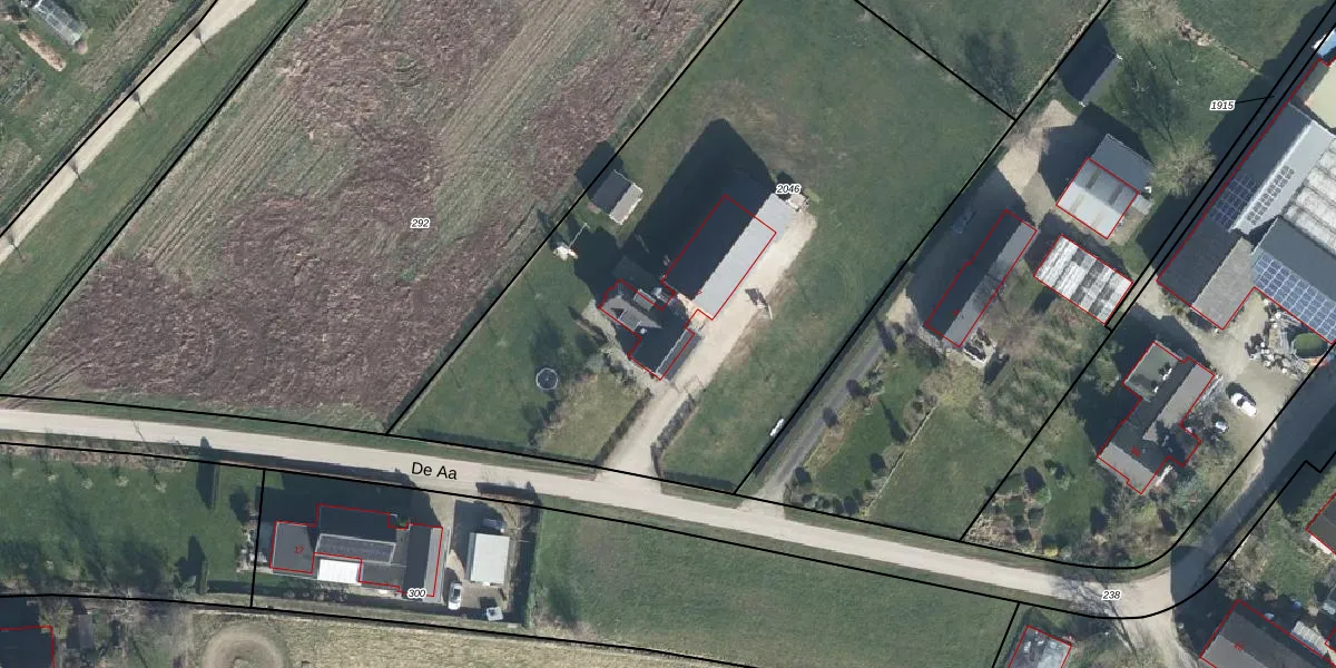 Het perceel waarop De Aa 7 staat heeft een oppervlakte van 3650 m². Dit is een zeer groot perceel. De perceeloppervlakte wordt geregistreerd door het Kadaster. Gedetailleerde informatie over de maten van dit perceel kunt u vinden in het rapport Kadastrale kaart met maatvoering van De Aa 7.