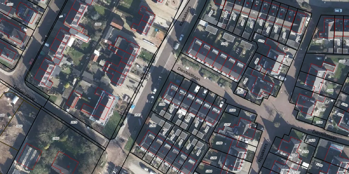 Het perceel waarop Diesfeldtlaan 2 staat heeft een oppervlakte van 213 m². Dit is een middelgroot perceel. De perceeloppervlakte wordt geregistreerd door het Kadaster. Gedetailleerde informatie over de maten van dit perceel kunt u vinden in het rapport Kadastrale kaart met maatvoering van Diesfeldtlaan 2.