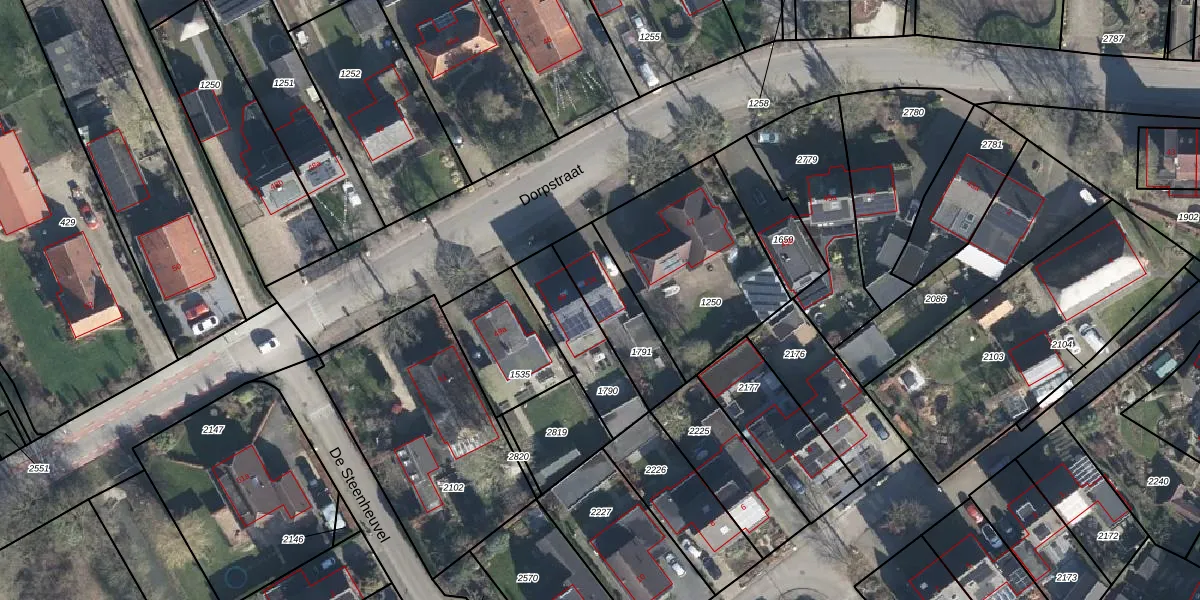 Het perceel waarop Dorpstraat 47-a staat heeft een oppervlakte van 246 m². Dit is een middelgroot perceel. De perceeloppervlakte wordt geregistreerd door het Kadaster. Gedetailleerde informatie over de maten van dit perceel kunt u vinden in het rapport Kadastrale kaart met maatvoering van Dorpstraat 47-a.