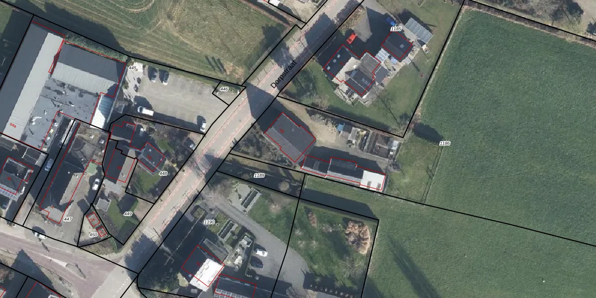 Het perceel waarop Dorpstraat 59 staat heeft een oppervlakte van 8725 m². Dit is een zeer groot perceel. De perceeloppervlakte wordt geregistreerd door het Kadaster. Gedetailleerde informatie over de maten van dit perceel kunt u vinden in het rapport Kadastrale kaart met maatvoering van Dorpstraat 59.