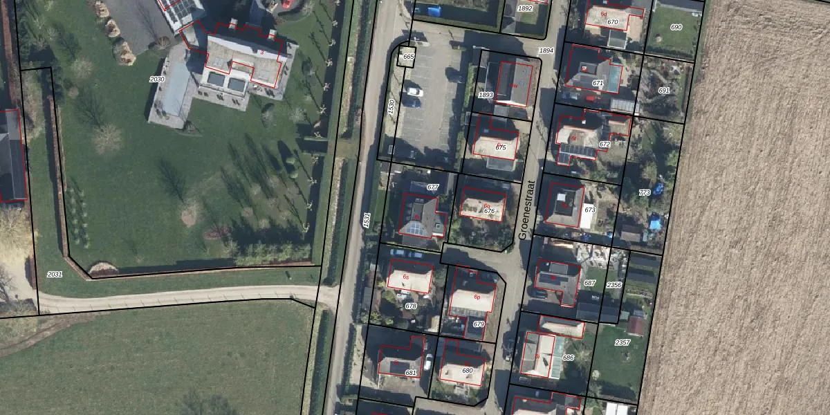 Het perceel waarop Groenestraat 6-r staat heeft een oppervlakte van 320 m². Dit is een groot perceel. De perceeloppervlakte wordt geregistreerd door het Kadaster. Gedetailleerde informatie over de maten van dit perceel kunt u vinden in het rapport Kadastrale kaart met maatvoering van Groenestraat 6-r.