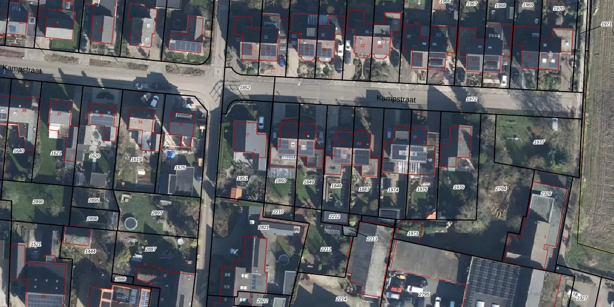 Het perceel waarop Kampstraat 23 staat heeft een oppervlakte van 310 m². Dit is een groot perceel. De perceeloppervlakte wordt geregistreerd door het Kadaster. Gedetailleerde informatie over de maten van dit perceel kunt u vinden in het rapport Kadastrale kaart met maatvoering van Kampstraat 23.