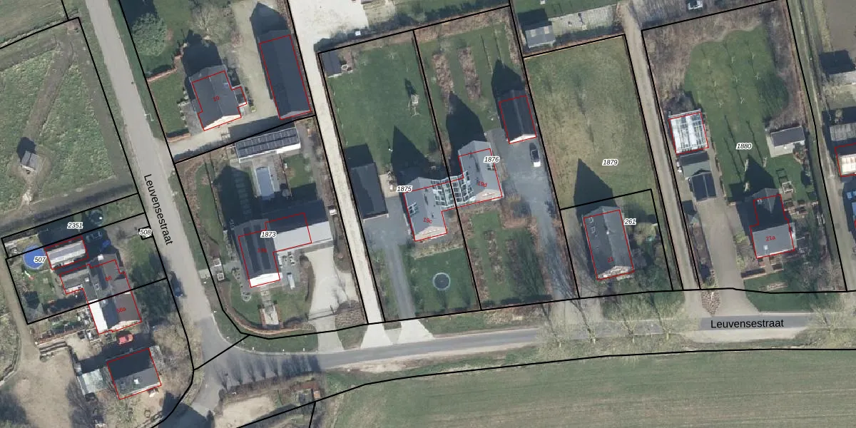 Het perceel waarop Leuvensestraat 19-c staat heeft een oppervlakte van 1500 m². Dit is een zeer groot perceel. De perceeloppervlakte wordt geregistreerd door het Kadaster. Gedetailleerde informatie over de maten van dit perceel kunt u vinden in het rapport Kadastrale kaart met maatvoering van Leuvensestraat 19-c.