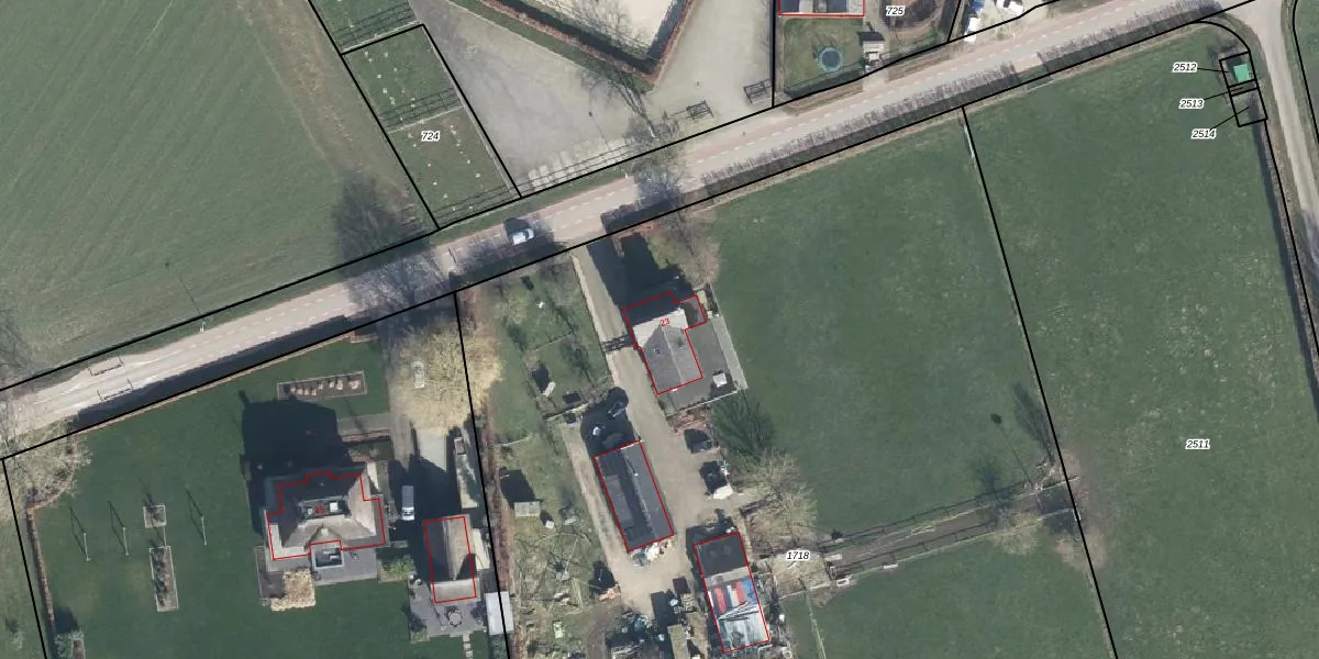 Het adres ligt op het perceel DVN00-H-1718, dat zich in de kadastrale gemeente Duiven bevindt. De oppervlakte van het perceel is 9860 m². Dat is groter dan gemiddeld in Duiven, waar de gemiddelde perceeloppervlakte op 2661,35 m² ligt. Het grootste perceel in de kadastrale gemeente is 22,4 ha. Het kleinste perceel heeft een oppervlakte van 0 m². Er zijn geen andere adressen aanwezig op het perceel. De laatste wijziging in het de Basisregistratie Kadaster (BRK) was op 04-08-2015.