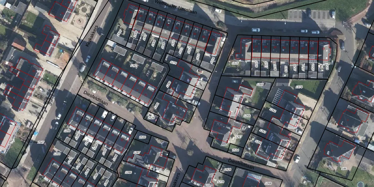 Het perceel waarop Rijsakkers 13 staat heeft een oppervlakte van 202 m². Dit is een middelgroot perceel. De perceeloppervlakte wordt geregistreerd door het Kadaster. Gedetailleerde informatie over de maten van dit perceel kunt u vinden in het rapport Kadastrale kaart met maatvoering van Rijsakkers 13.