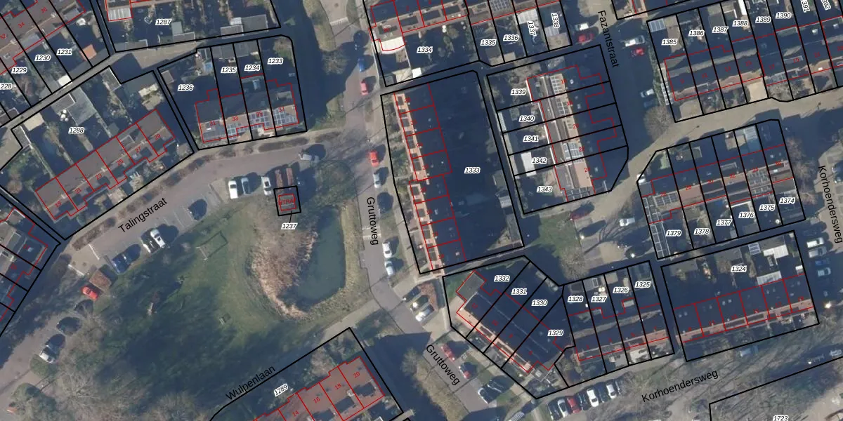 Het perceel waarop Gruttoweg 18 staat heeft een oppervlakte van 1097 m². Dit is een zeer groot perceel. De perceeloppervlakte wordt geregistreerd door het Kadaster. Gedetailleerde informatie over de maten van dit perceel kunt u vinden in het rapport Kadastrale kaart met maatvoering van Gruttoweg 18.