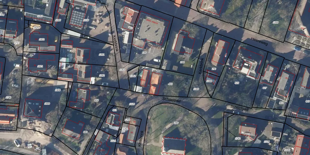 Het perceel waarop Kerkbrink 25 staat heeft een oppervlakte van 560 m². Dit is een groot perceel. De perceeloppervlakte wordt geregistreerd door het Kadaster. Gedetailleerde informatie over de maten van dit perceel kunt u vinden in het rapport Kadastrale kaart met maatvoering van Kerkbrink 25.