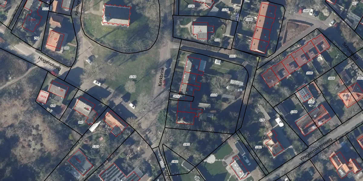 Het perceel waarop Kerkbrink 5 staat heeft een oppervlakte van 1583 m². Dit is een zeer groot perceel. De perceeloppervlakte wordt geregistreerd door het Kadaster. Gedetailleerde informatie over de maten van dit perceel kunt u vinden in het rapport Kadastrale kaart met maatvoering van Kerkbrink 5.