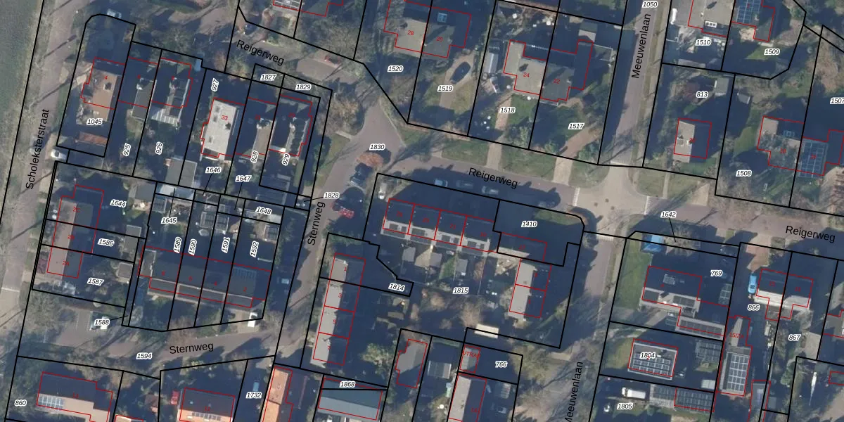 Het perceel waarop Reigerweg 23 staat heeft een oppervlakte van 1744 m². Dit is een zeer groot perceel. De perceeloppervlakte wordt geregistreerd door het Kadaster. Gedetailleerde informatie over de maten van dit perceel kunt u vinden in het rapport Kadastrale kaart met maatvoering van Reigerweg 23.