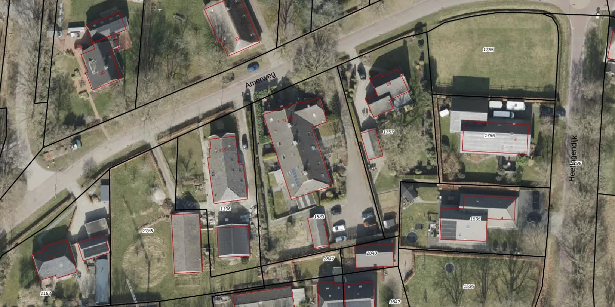 Het perceel waarop Amerweg 31-j staat heeft een oppervlakte van 1953 m². Dit is een zeer groot perceel. De perceeloppervlakte wordt geregistreerd door het Kadaster. Gedetailleerde informatie over de maten van dit perceel kunt u vinden in het rapport Kadastrale kaart met maatvoering van Amerweg 31-j.