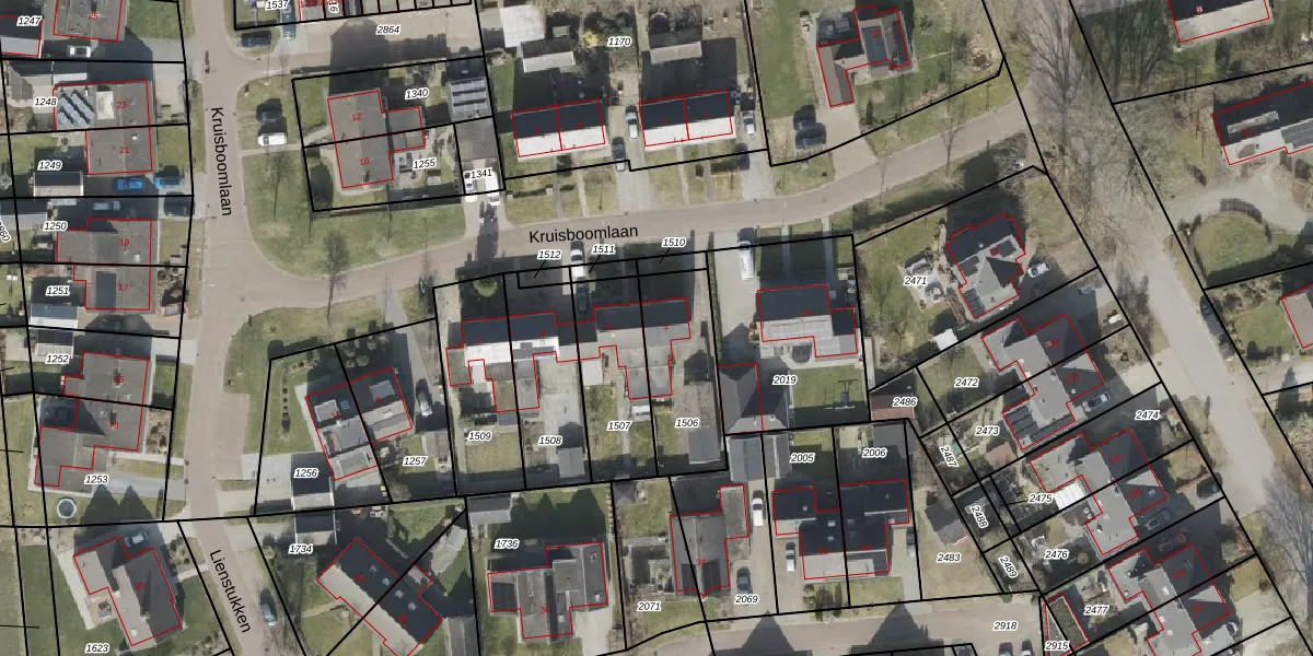 Kruisboomlaan 1 is gelegen op kadastraal perceel RDE00T1506. Deze kadastrale aanduiding is uniek en wordt gebruikt door het Kadaster om eigendomsrechten en andere zakelijke rechten vast te leggen. Het perceel maakt onderdeel uit van de kadastrale gemeente Rolde.