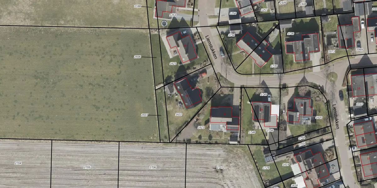 Het perceel waarop Lienstukken 33 staat heeft een oppervlakte van 648 m². Dit is een groot perceel. De perceeloppervlakte wordt geregistreerd door het Kadaster. Gedetailleerde informatie over de maten van dit perceel kunt u vinden in het rapport Kadastrale kaart met maatvoering van Lienstukken 33.