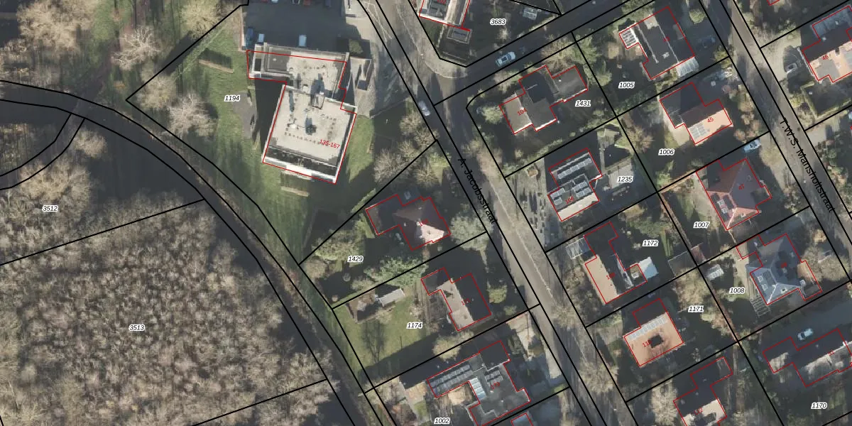 Het perceel waarop A. Jacobsstraat 169 staat heeft een oppervlakte van 781 m². Dit is een groot perceel. De perceeloppervlakte wordt geregistreerd door het Kadaster. Gedetailleerde informatie over de maten van dit perceel kunt u vinden in het rapport Kadastrale kaart met maatvoering van A. Jacobsstraat 169.