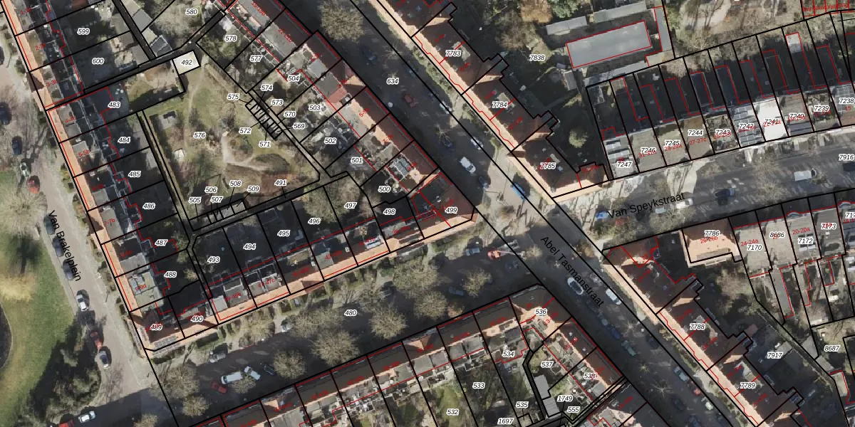 Het adres is gelegen op perceel 499 in de sectie R en de kadastrale gemeente Groningen. De kadastrale aanduiding is aldus GNG00-R-499. De gemiddelde perceelgrootte in Groningen is 771,11 m². Dit perceel is kleiner: de perceeloppervlakte bedraagt 152 m². De grootste perceeloppervlakte in de kadastrale gemeente is 31,8 ha. De kleinste oppervlakte bedraagt 0 m². Op het perceel liggen in totaal 5 adressen. De huidige grenzen van het perceel zijn digitaal in de Basisregistratie Kadaster (BRK) geregistreerd op 15-08-2003.