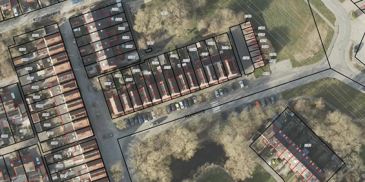 Akeleiweg 164 is gelegen op kadastraal perceel GNG01AC2114. Deze kadastrale aanduiding is uniek en wordt gebruikt door het Kadaster om eigendomsrechten en andere zakelijke rechten vast te leggen. Het perceel maakt onderdeel uit van de kadastrale gemeente Groningen.
