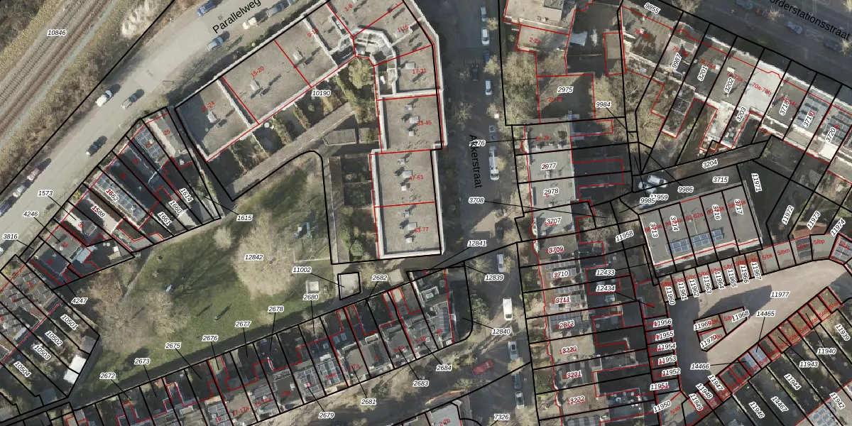 Het perceel waarop Akkerstraat 63 staat heeft een oppervlakte van 2500 m². Dit is een zeer groot perceel. De perceeloppervlakte wordt geregistreerd door het Kadaster. Gedetailleerde informatie over de maten van dit perceel kunt u vinden in het rapport Kadastrale kaart met maatvoering van Akkerstraat 63.