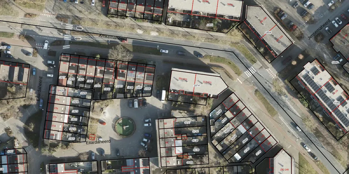 Het perceel waarop Amkemaheerd 201 staat heeft een oppervlakte van 489 m². Dit is een groot perceel. De perceeloppervlakte wordt geregistreerd door het Kadaster. Gedetailleerde informatie over de maten van dit perceel kunt u vinden in het rapport Kadastrale kaart met maatvoering van Amkemaheerd 201.