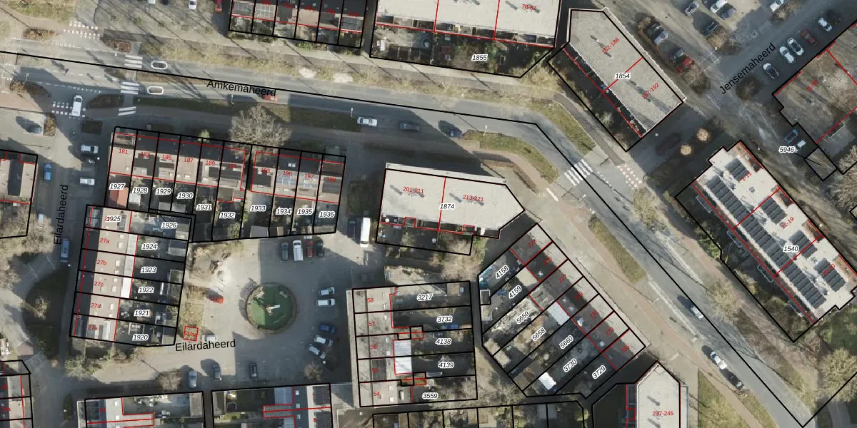 Amkemaheerd 207 is gelegen op kadastraal perceel GNG01AB1874. Deze kadastrale aanduiding is uniek en wordt gebruikt door het Kadaster om eigendomsrechten en andere zakelijke rechten vast te leggen. Het perceel maakt onderdeel uit van de kadastrale gemeente Groningen.