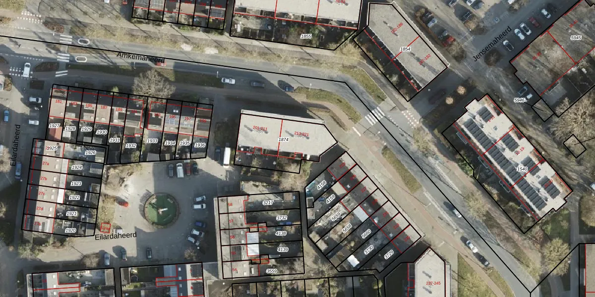 Amkemaheerd 221 is gelegen op kadastraal perceel GNG01AB1874. Deze kadastrale aanduiding is uniek en wordt gebruikt door het Kadaster om eigendomsrechten en andere zakelijke rechten vast te leggen. Het perceel maakt onderdeel uit van de kadastrale gemeente Groningen.