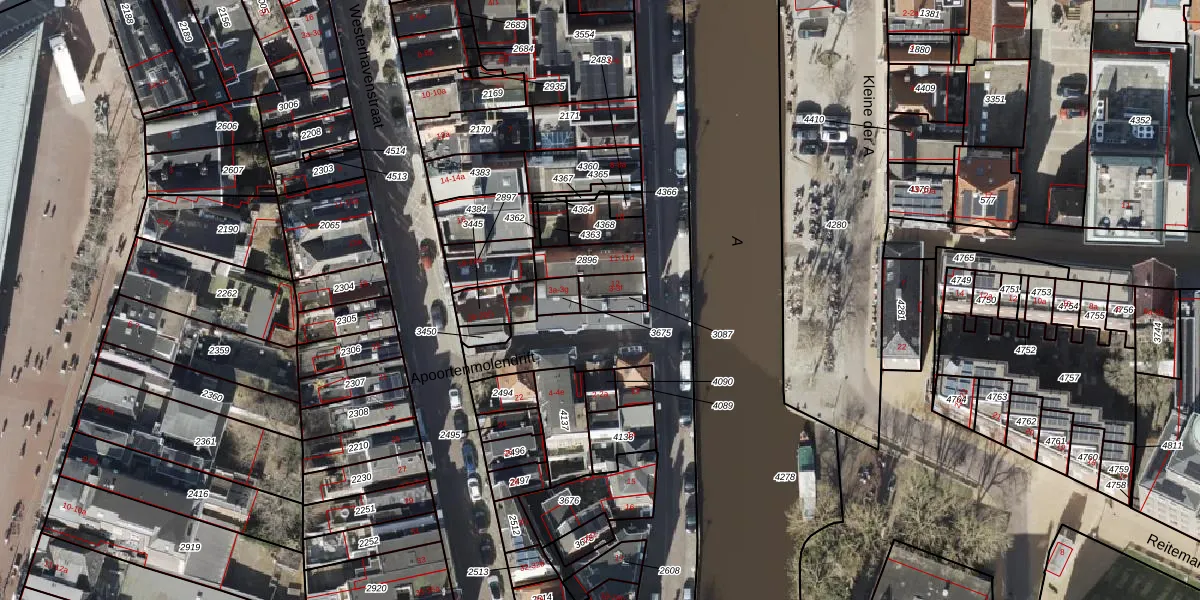 Het perceel waarop het adres ligt is GNG00-K-3087. De afkorting 'GNG00' staat voor kadastrale gemeente Groningen. De gemiddelde perceelgrootte in Groningen is 771,11 m². Dit perceel is kleiner: de perceeloppervlakte bedraagt 66 m². Het grootste perceel in de kadastrale gemeente is 31,8 ha. Het kleinste perceel heeft een oppervlakte van 0 m². Er zijn 6 adressen aanwezig op het perceel. De laatste wijziging in het de Basisregistratie Kadaster (BRK) was op 26-06-2003.