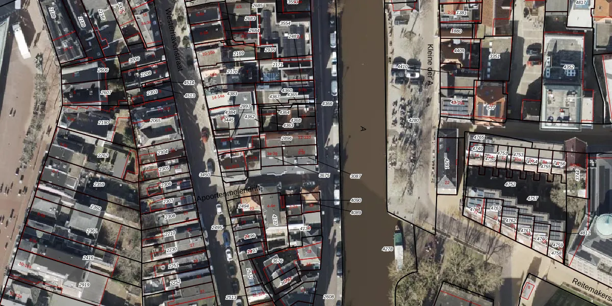Het perceel waarop het adres ligt is GNG00-K-3087. De afkorting 'GNG00' staat voor kadastrale gemeente Groningen. De gemiddelde perceelgrootte in Groningen is 770,7 m². Dit perceel is kleiner: de perceeloppervlakte bedraagt 66 m². Het grootste perceel in de kadastrale gemeente is 31,8 ha. Het kleinste perceel heeft een oppervlakte van 0 m². Er zijn 6 adressen aanwezig op het perceel. De huidige grenzen van het perceel zijn digitaal in de Basisregistratie Kadaster (BRK) geregistreerd op 26-06-2003.