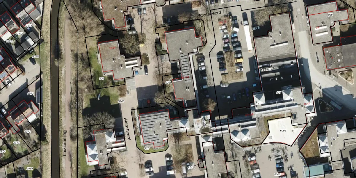 Atensheerd 106 is gelegen op kadastraal perceel GNG01AB925. Deze kadastrale aanduiding is uniek en wordt gebruikt door het Kadaster om eigendomsrechten en andere zakelijke rechten vast te leggen. Het perceel maakt onderdeel uit van de kadastrale gemeente Groningen.