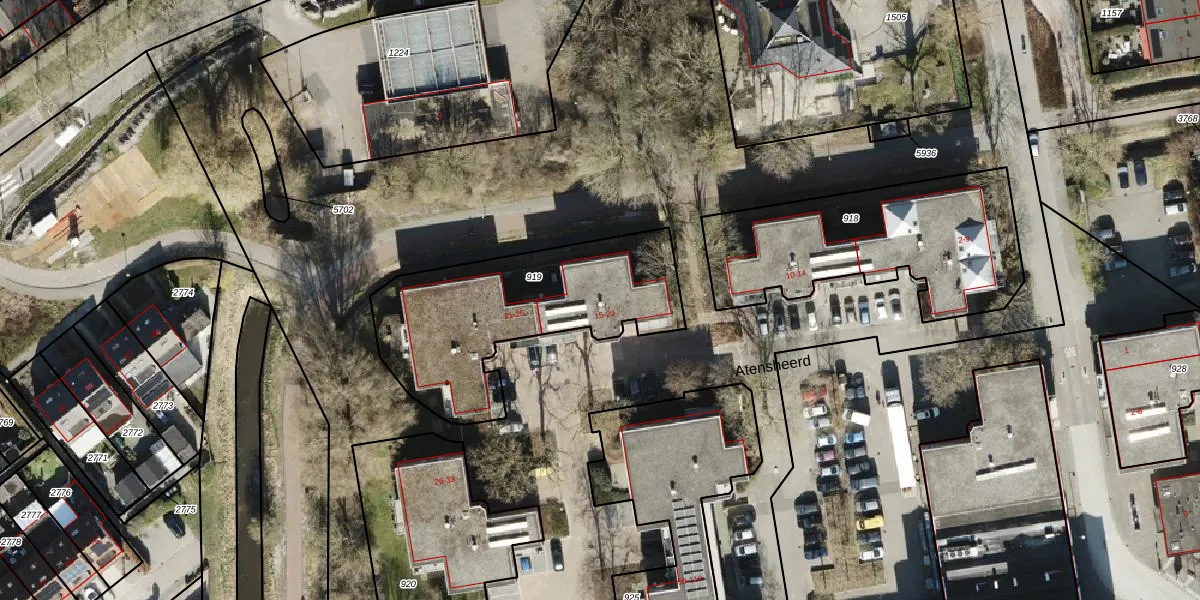 Het perceel waarop Atensheerd 19 staat heeft een oppervlakte van 914 m². Dit is een groot perceel. De perceeloppervlakte wordt geregistreerd door het Kadaster. Gedetailleerde informatie over de maten van dit perceel kunt u vinden in het rapport Kadastrale kaart met maatvoering van Atensheerd 19.