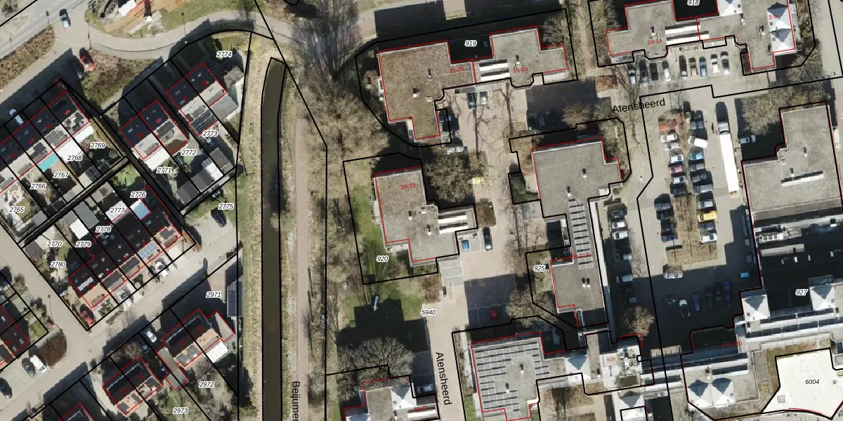 Atensheerd 27 is gelegen op kadastraal perceel GNG01AB920. Deze kadastrale aanduiding is uniek en wordt gebruikt door het Kadaster om eigendomsrechten en andere zakelijke rechten vast te leggen. Het perceel maakt onderdeel uit van de kadastrale gemeente Groningen.