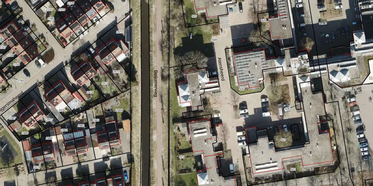 Atensheerd 39 is gelegen op kadastraal perceel GNG01AB921. Deze kadastrale aanduiding is uniek en wordt gebruikt door het Kadaster om eigendomsrechten en andere zakelijke rechten vast te leggen. Het perceel maakt onderdeel uit van de kadastrale gemeente Groningen.