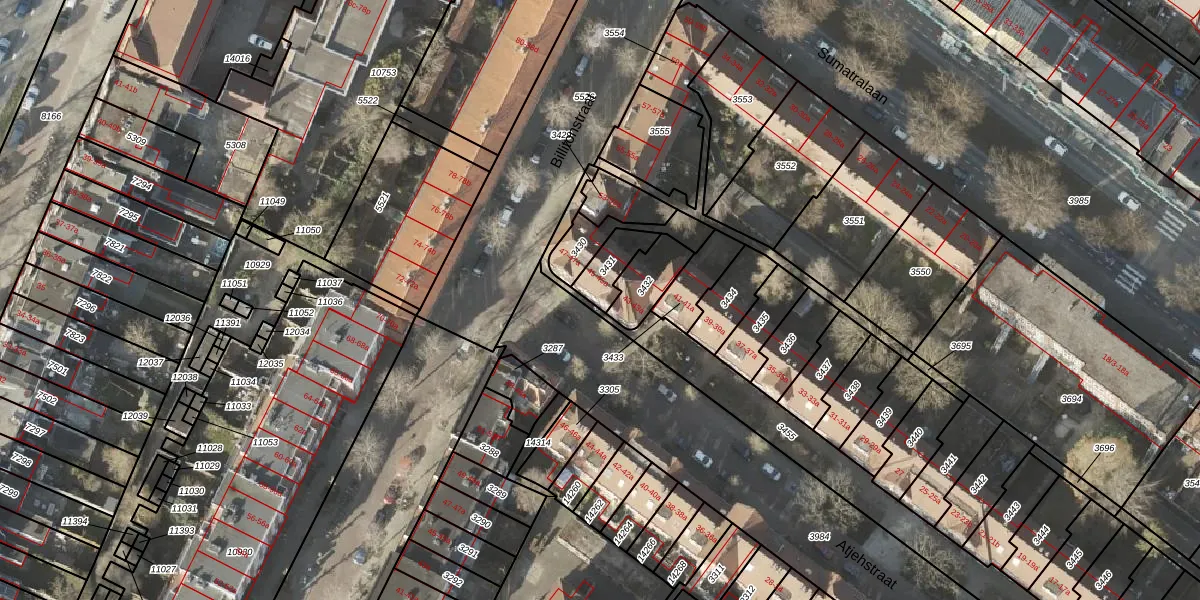 Het perceel waarop Atjehstraat 45-a staat heeft een oppervlakte van 92 m². Dit is een klein perceel. De perceeloppervlakte wordt geregistreerd door het Kadaster. Gedetailleerde informatie over de maten van dit perceel kunt u vinden in het rapport Kadastrale kaart met maatvoering van Atjehstraat 45-a.