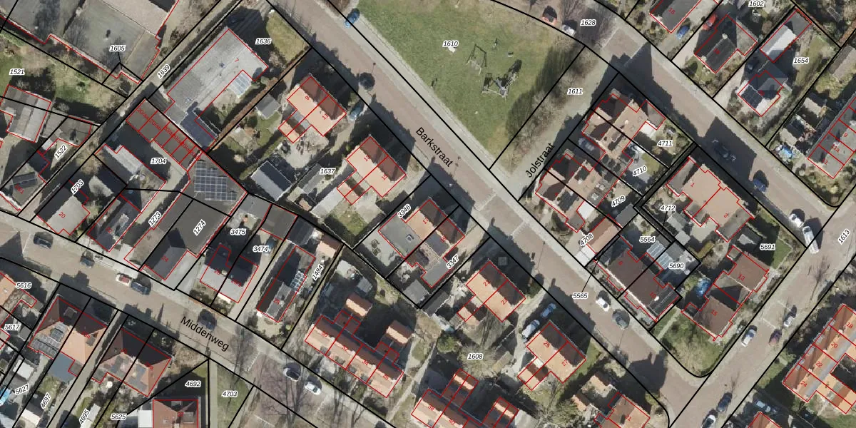 Gebruik de zoekbalk of klik op een perceel voor informatie over de adressen binnen dit perceel.