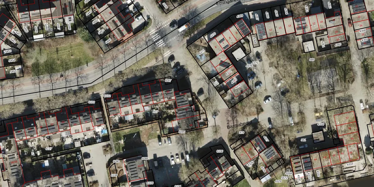 Barmaheerd 95 is gelegen op kadastraal perceel GNG01AB977. Deze kadastrale aanduiding is uniek en wordt gebruikt door het Kadaster om eigendomsrechten en andere zakelijke rechten vast te leggen. Het perceel maakt onderdeel uit van de kadastrale gemeente Groningen.