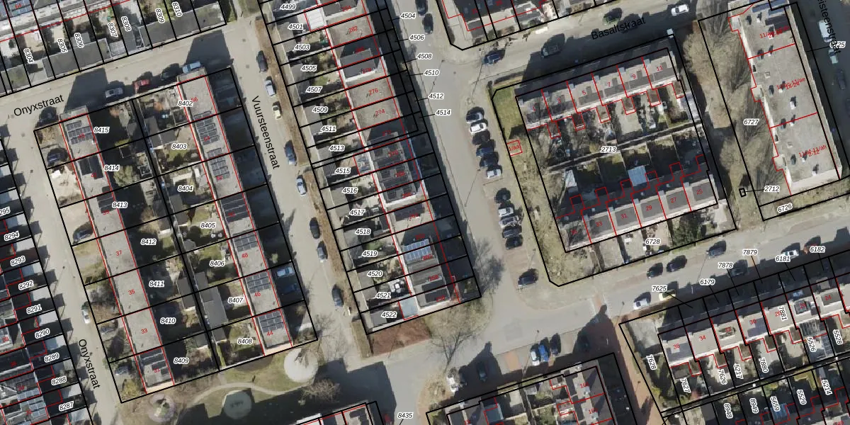 Gebruik de zoekbalk of klik op een perceel voor informatie over de adressen binnen dit perceel.