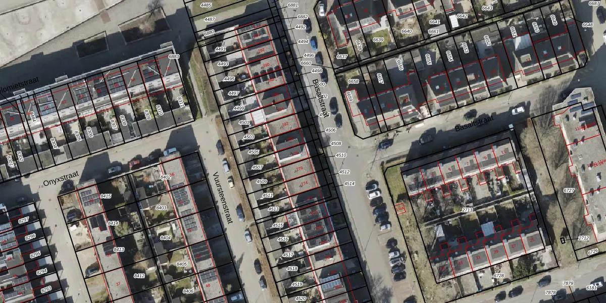 Gebruik de zoekbalk of klik op een perceel voor informatie over de adressen binnen dit perceel.