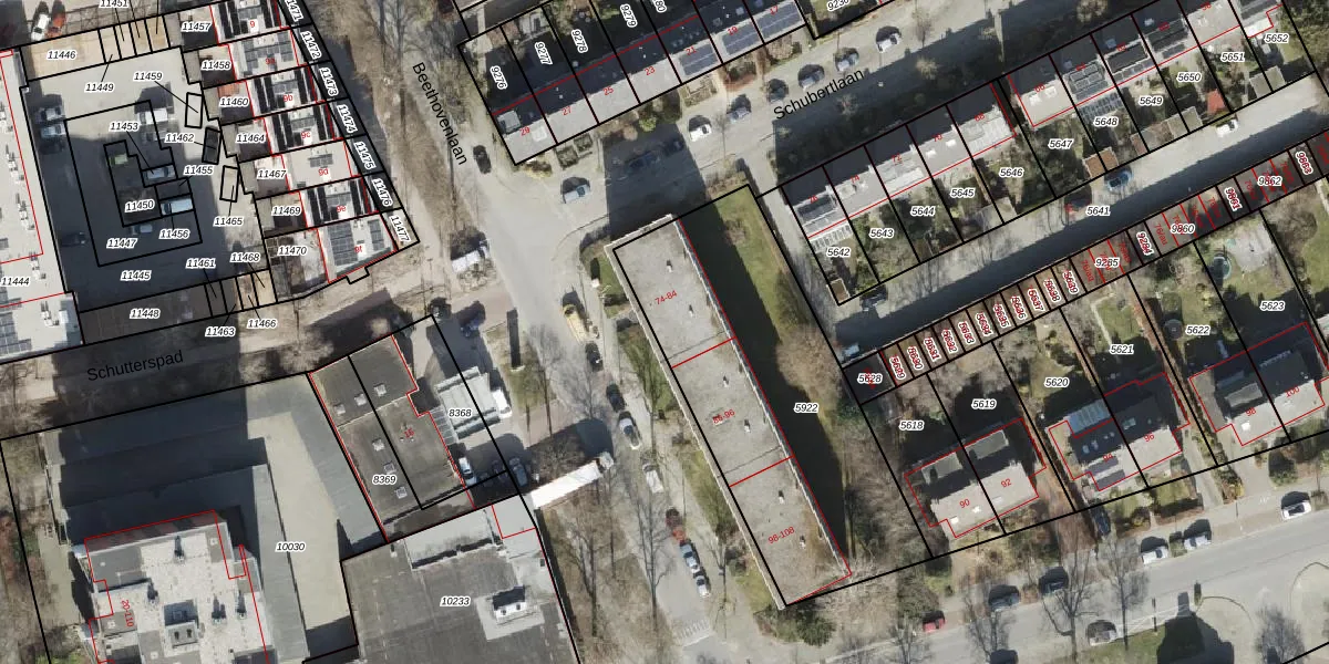Het perceel waarop Beethovenlaan 78 staat heeft een oppervlakte van 1402 m². Dit is een zeer groot perceel. De perceeloppervlakte wordt geregistreerd door het Kadaster. Gedetailleerde informatie over de maten van dit perceel kunt u vinden in het rapport Kadastrale kaart met maatvoering van Beethovenlaan 78.