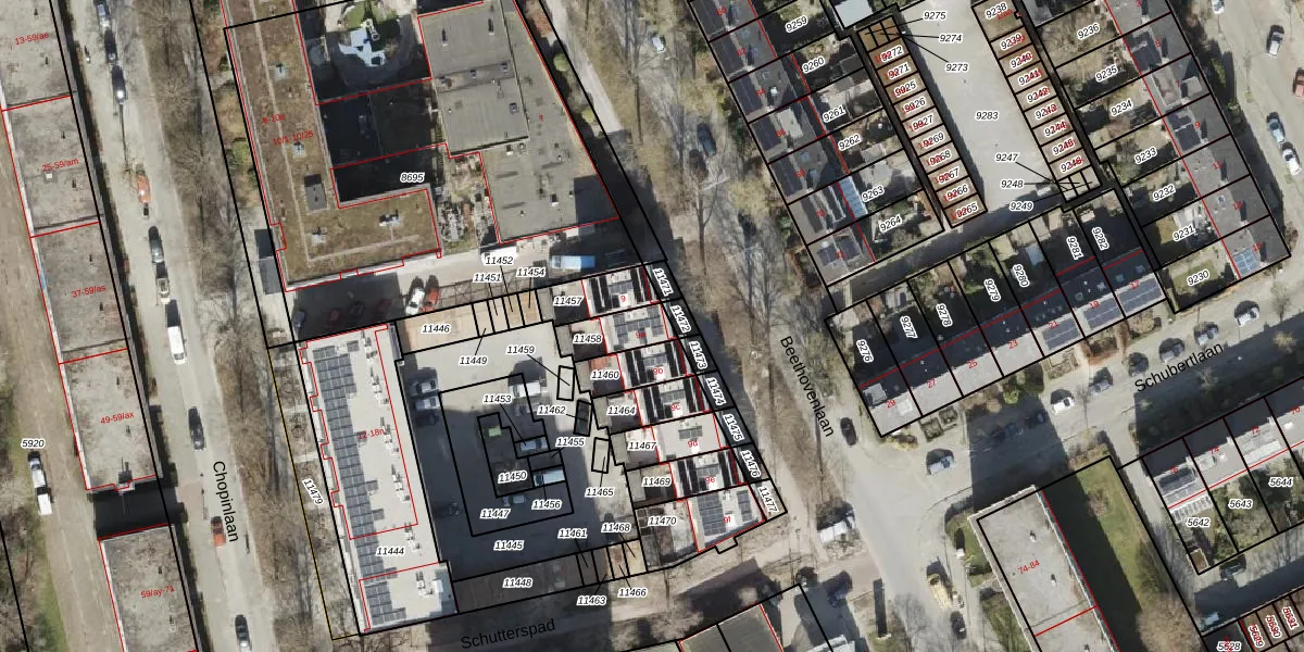 Gebruik de zoekbalk of klik op een perceel voor informatie over de adressen binnen dit perceel.