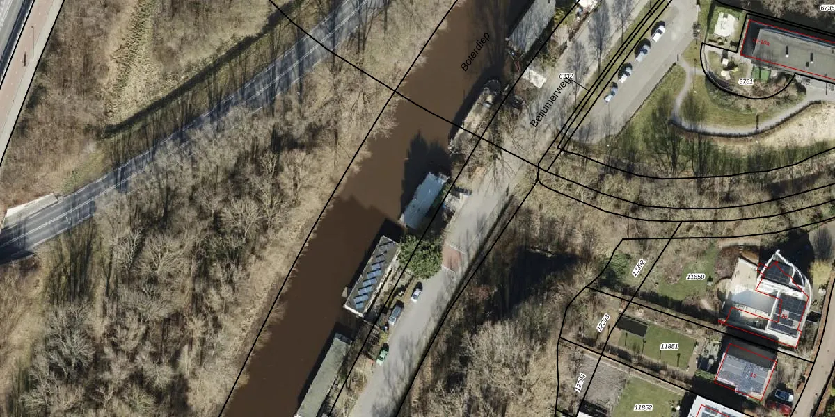 Het perceel waarop Beijumerweg 1010 staat heeft een oppervlakte van 5180 m². Dit is een zeer groot perceel. De perceeloppervlakte wordt geregistreerd door het Kadaster. Gedetailleerde informatie over de maten van dit perceel kunt u vinden in het rapport Kadastrale kaart met maatvoering van Beijumerweg 1010.