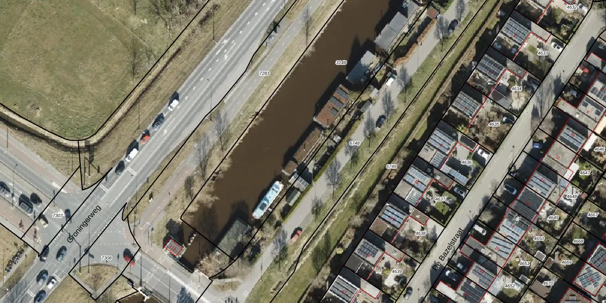 Het perceel waarop Beijumerweg 1046 staat heeft een oppervlakte van 4395 m². Dit is een zeer groot perceel. De perceeloppervlakte wordt geregistreerd door het Kadaster. Gedetailleerde informatie over de maten van dit perceel kunt u vinden in het rapport Kadastrale kaart met maatvoering van Beijumerweg 1046.