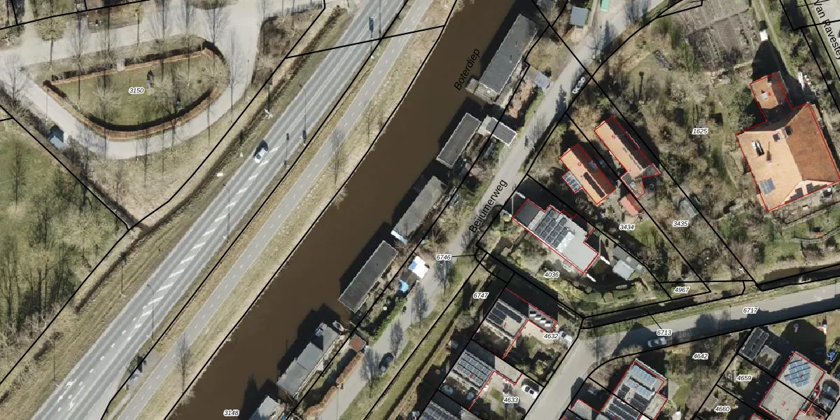 Het perceel waarop Beijumerweg 1056 staat heeft een oppervlakte van 4395 m². Dit is een zeer groot perceel. De perceeloppervlakte wordt geregistreerd door het Kadaster. Gedetailleerde informatie over de maten van dit perceel kunt u vinden in het rapport Kadastrale kaart met maatvoering van Beijumerweg 1056.